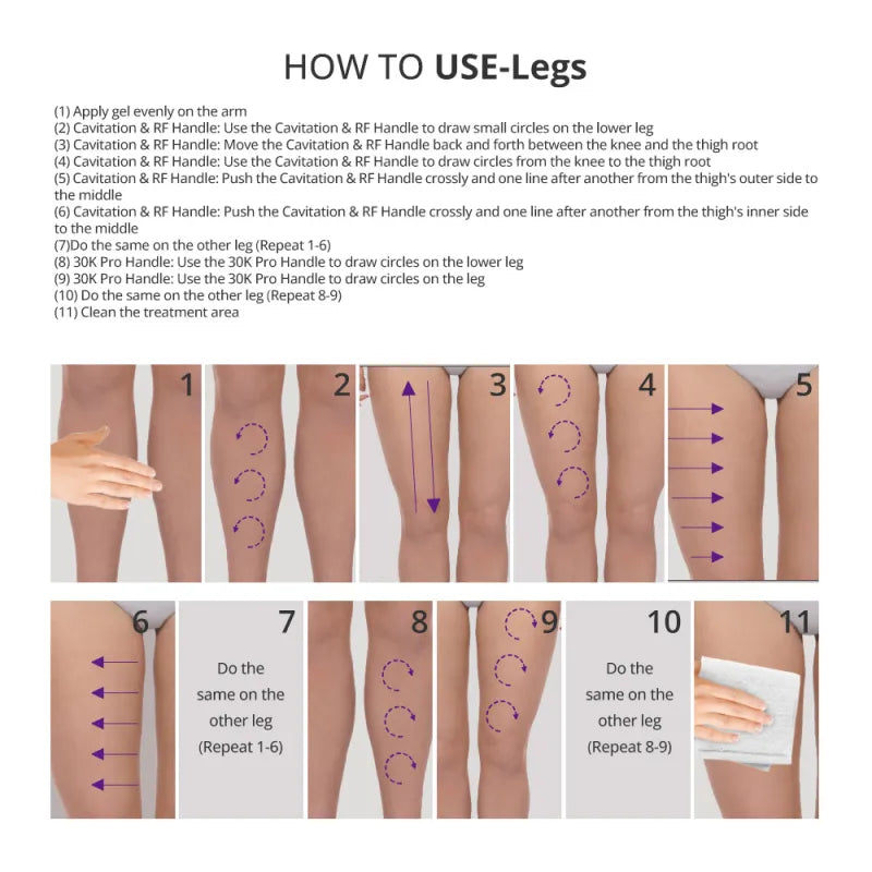 Guided Sessions: The body cavitation machine's screen provides step-by-step guidance on handle usage and operation methods for different body parts. Perfect for beginners, enjoy a hassle-free body contouring and skin rejuvenation journey even if you're new to beauty machines.